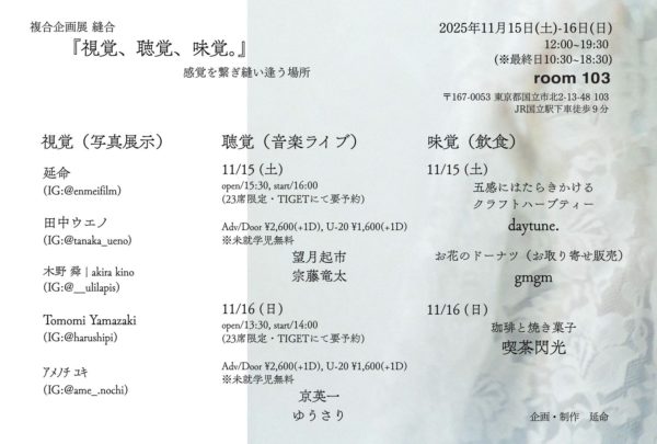 11月15日(土)– 11月16日(日)複合企画展 「縫合」 『視覚、聴覚、味覚。』